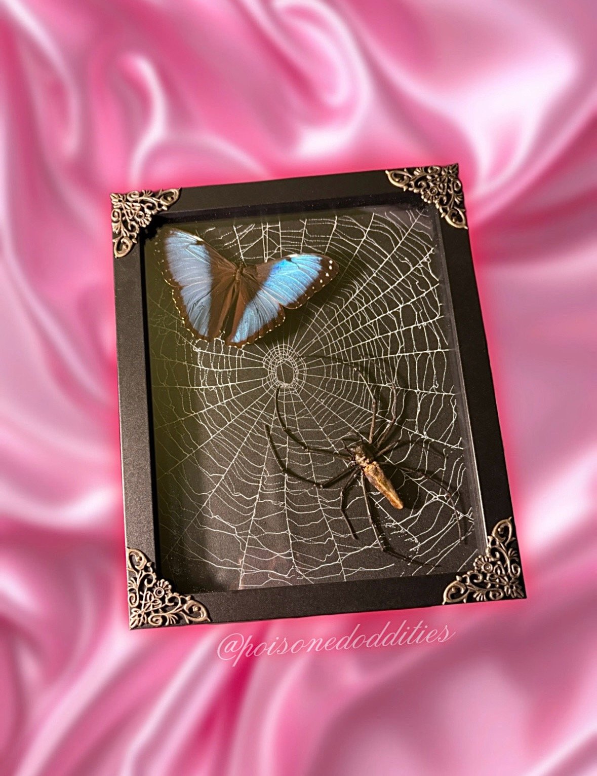 Gorgeous frame with 100% real spider, butterfly and web! No insects are never harmed!