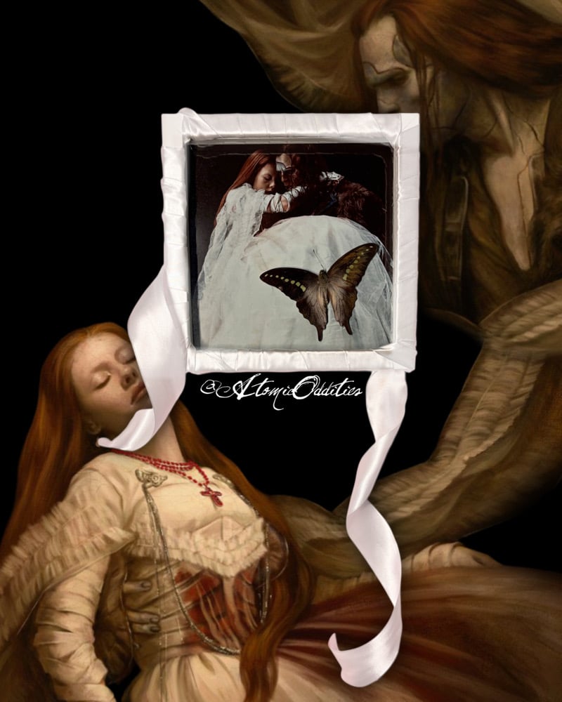 To make this film come to life, I wrapped the frame with (white) thin wire ribbon, for the bandages look!