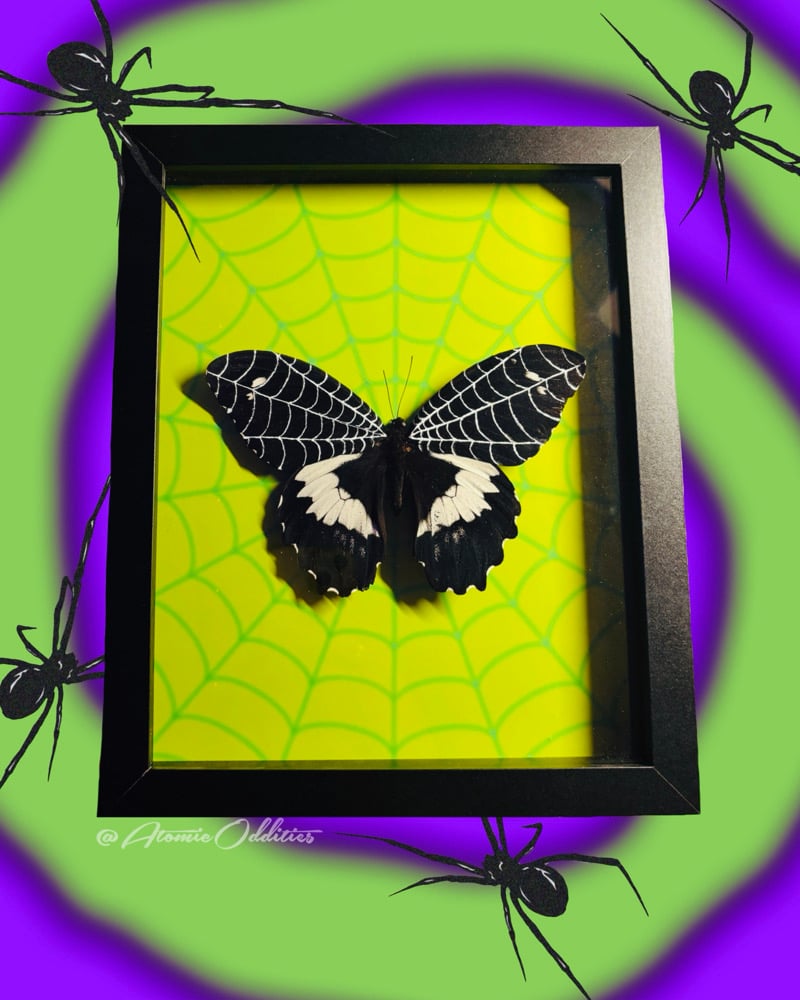 Real (large) Butterfly, Papilio Gambrisius from Indonesia, hand pained webs by me!